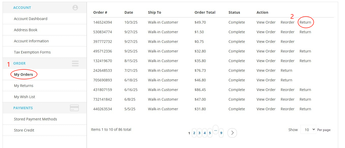 - Go to My Orders => Return