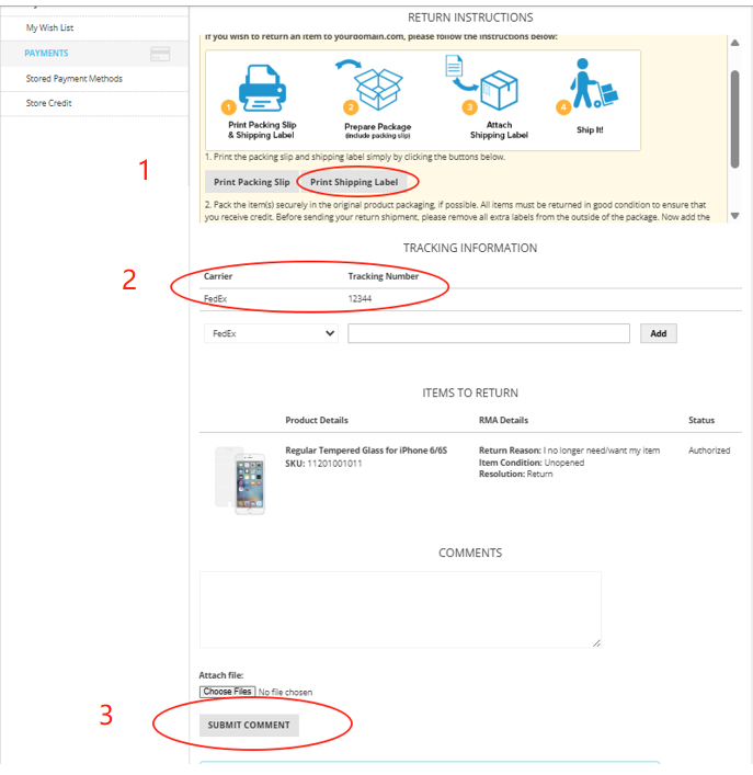 - Once you have dropped off the package, please submit a comment letting us know you have sent the item back